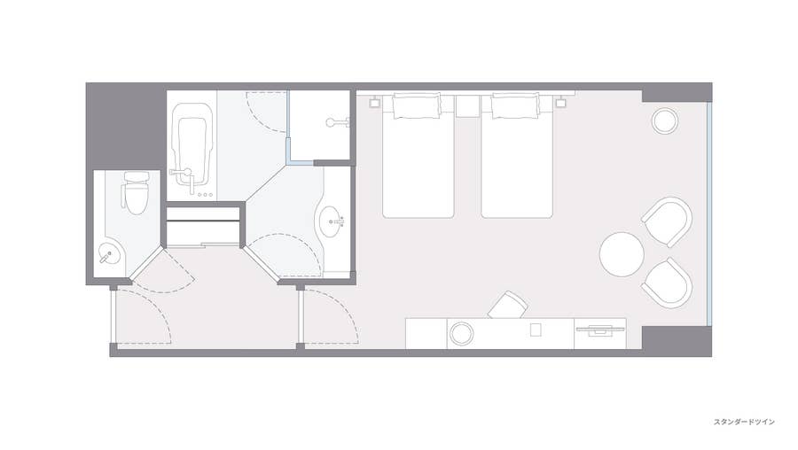 | 設備 | 空調控制/床鋪/浴室與淋浴/洗手間/智慧電視/客房內Wi-Fi(免費)/室內保險箱/IDD國際直撥電話/電熱水壺/咖啡與紅茶組/吹風機/居家服與拖鞋/浴巾/面巾/手巾/鞋刷與鞋拔 |