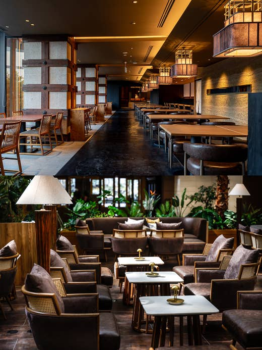 基於「太平洋聖殿-休憩之所」的設計概念,寬敞的中庭營造出開闊的空間,提供各種飲品,從自製薄荷莫吉托和其他雞尾酒,到侍酒師精選的葡萄酒、無酒精雞尾酒和軟飲料。
